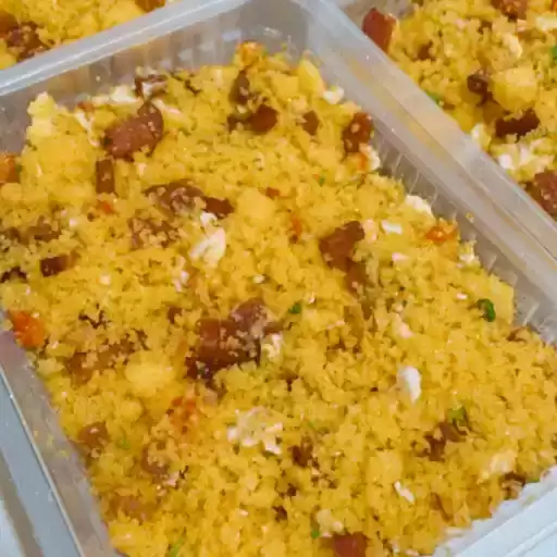 Acompanha arroz à sua escolha e fritas ou maionese.